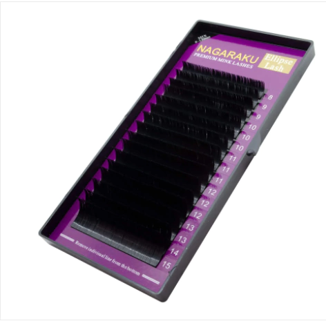 Cada bandeja dos cílios Nagaraku para extensão possui 16 linhas de fios que podem ser removidas e aderidas diretamente na base para fios de alongamento. Além disso os fios saem com facilidade da bandeja, sem deformar a curvatura do fio.